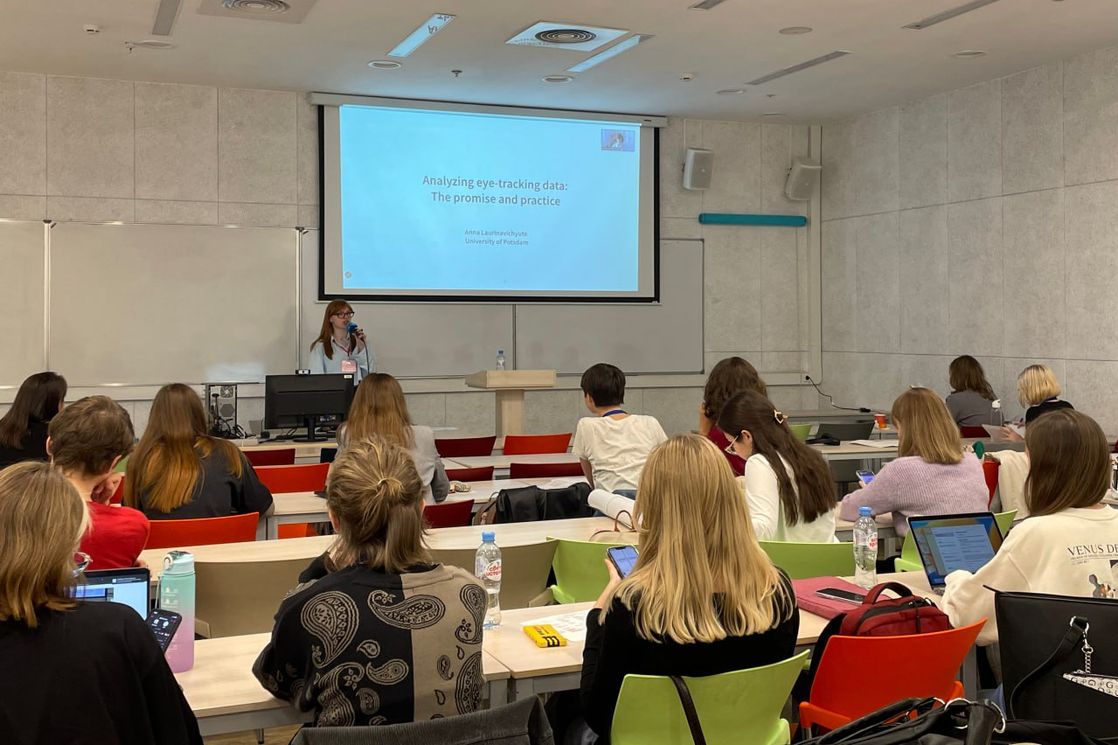 Anna Laurinavichyute, a postdoctoral researcher at the University of Potsdam, presented a report on traditional methods of analysing and processing video-oculographic data, as well as on new, more accurate and complex approaches that will improve the quality of video-oculographic research.